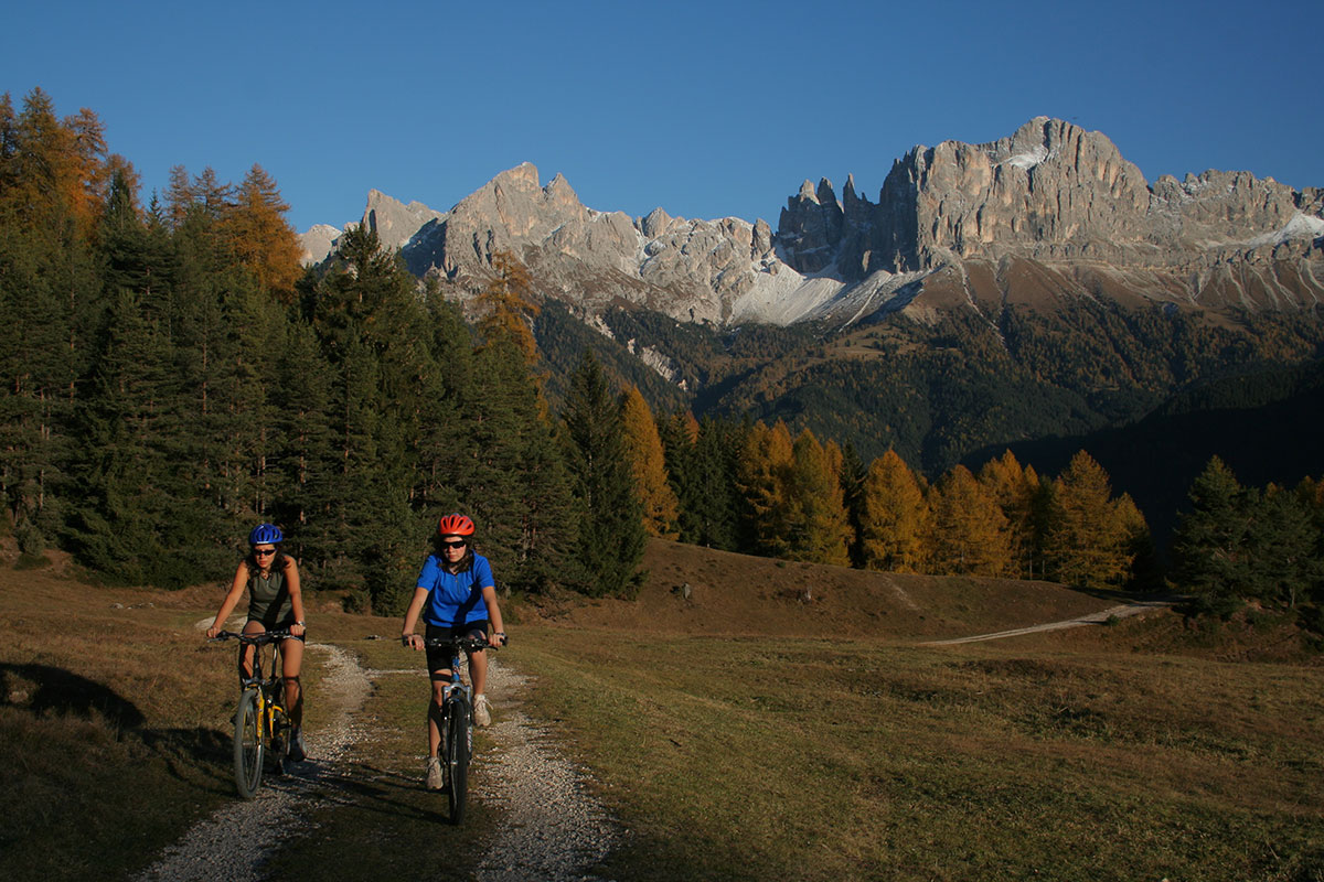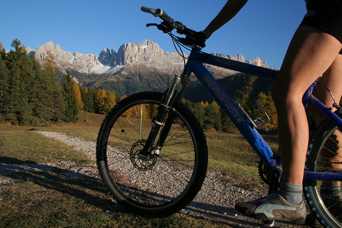 Die Bergwelt rund um das Rosengartenmassiv ist ein echtes Paradies für Radfahrer. Anspruchsvolle Anstiege, abwechslungsreiche Trails und spektakuläre Panoramastraßen machen unsere Region zu einem unvergesslichen Erlebnis für alle, die die Natur aktiv entdecken möchten. Eine gute Grundkondition ist beim klassischen Mountainbiken unerlässlich. Wer es etwas entspannter angehen möchte, muss auf dieses Erlebnis nicht verzichten und kann längere Touren und beeindruckende Pässe mühelos und umweltfreundlich mit dem E-Bike erkunden: Wir haben drei Fully-E-Bikes zum Verleihen im Haus. Auf Anfrage organisieren wir gerne weitere Fahrräder.